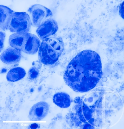 При окраске наблюдается уменьшение размеров спор, что может затруднять интерпретацию.