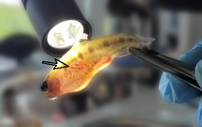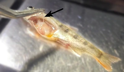 Ниже приведён пример поражения у молоди лососевых.